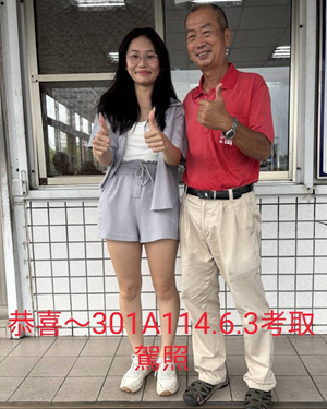 從事這個行業十幾年來,深覺這是一份有社會責任、有意義、能教學相長的工作。看學員在進步,最終能在麗園順利考取駕照,也覺得很有成就感。甚至自始自終也深信沒有教不會的學生,只有不會教的老師!